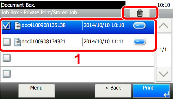 Follow the instructions to create the job storage. Specify a 4-digit access code and remember it. You will need this to retrieve the file from the printer.