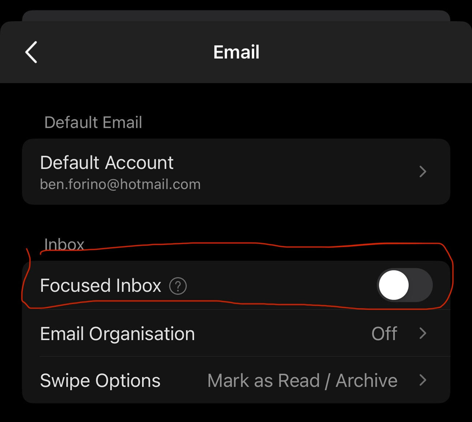 - Select “Focused Inbox” and set it to off