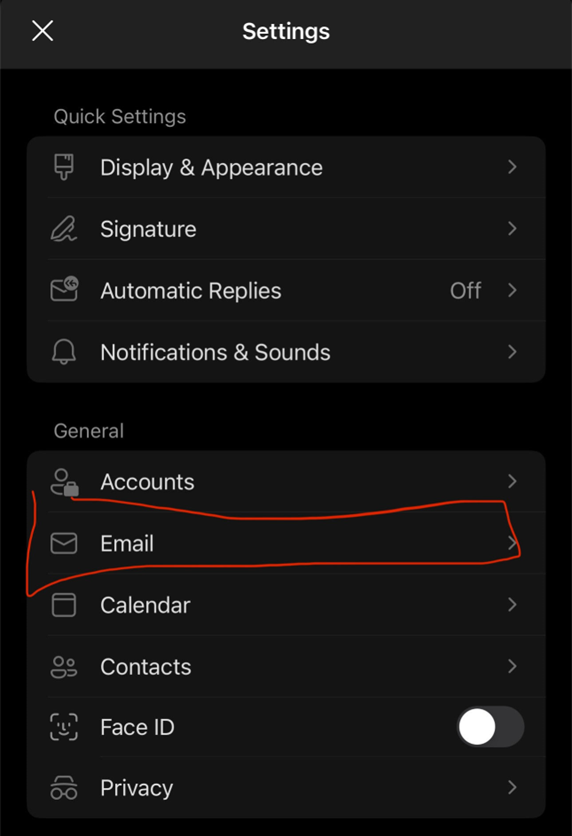 - Select “Email” from the settings list