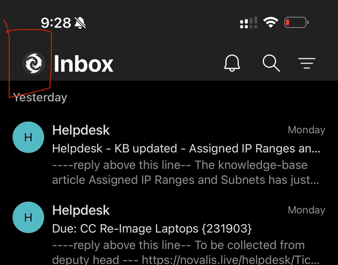 - Select the inbox tab