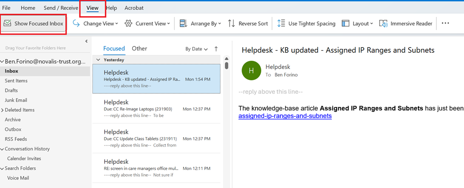 - Then select “show focused inbox”