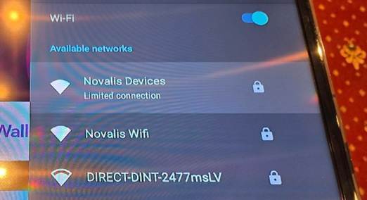 Step 3. Select “Novalis Devices” in the list of available WiFi networks and press OK.