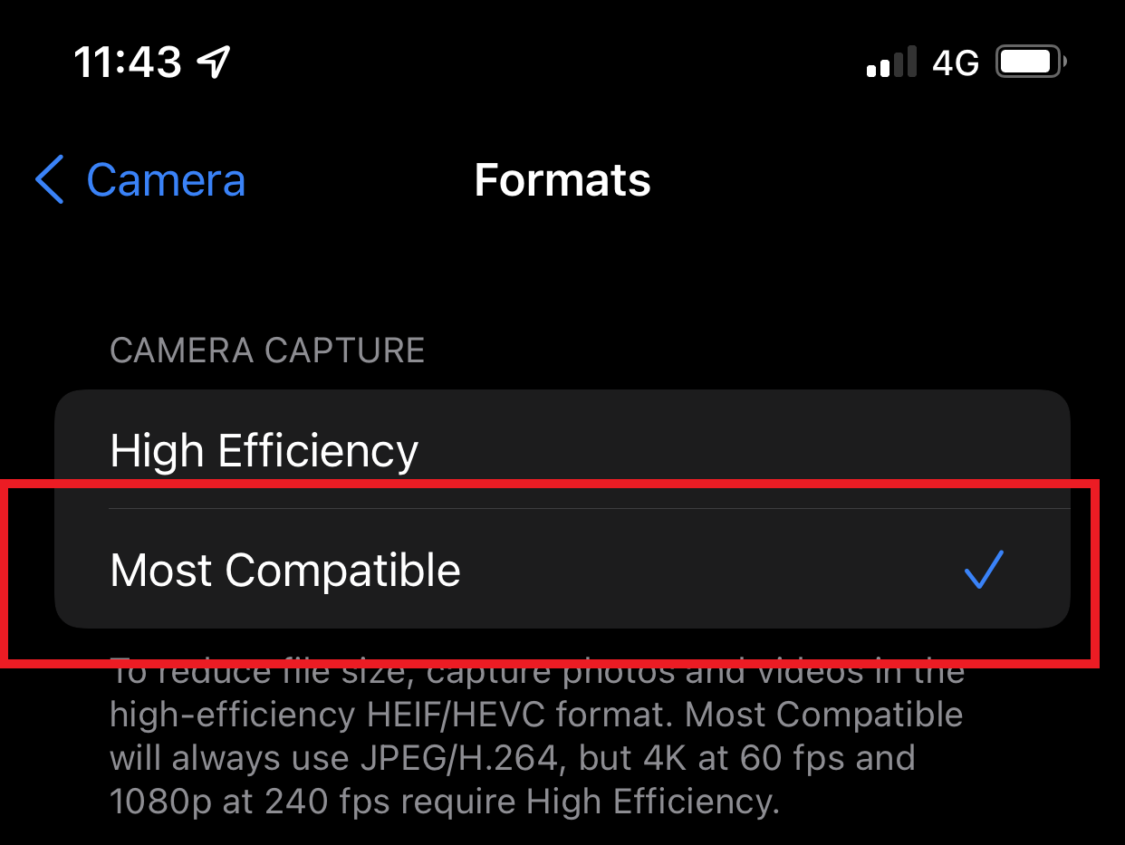 Change iPhone / iPad file format to JPEG